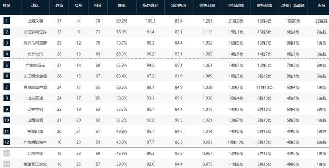 CBA排名大變天!首鋼鎖定前4,廣東再輸卡位戰(zhàn),上海34分暴擊遼寧