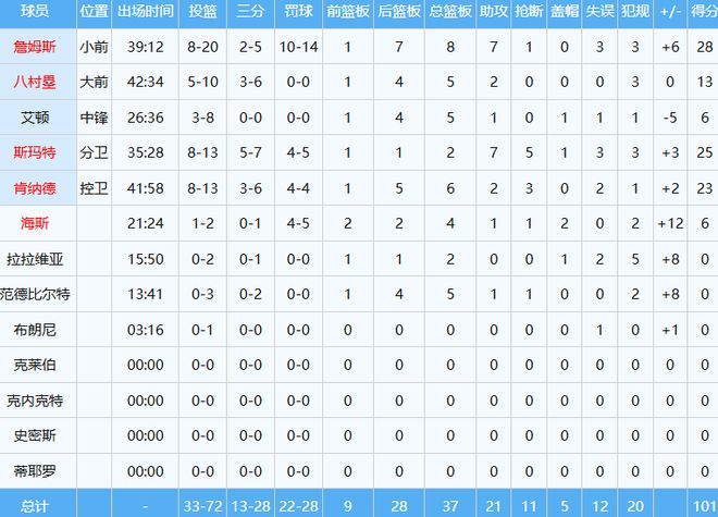 新版三巨頭詹姆斯+斯瑪特+肯納德,合砍76分16板16助9斷。