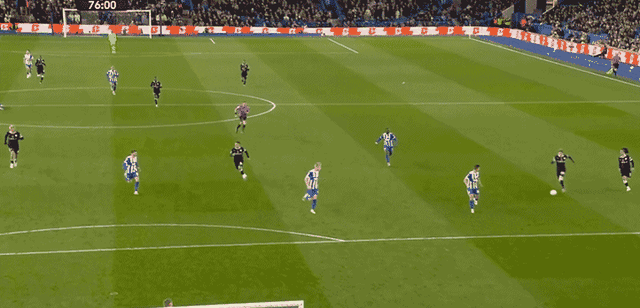 第91分鐘,費(fèi)布魯亨大腳長(zhǎng)傳,德克伊珀左路插上倒三角傳中,維爾貝克鏟射得手,布萊頓鎖定勝局,3-0!