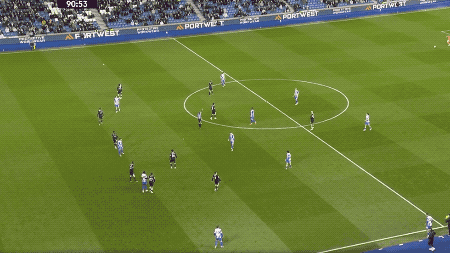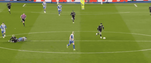 傷停補時階段,維爾布魯根大腳出球,德屈佩助攻,維爾貝克破門,整個進球過程,布萊頓只有3人觸球。