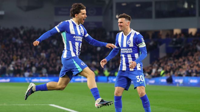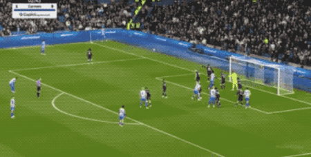布萊頓獲得角球,卡迪奧盧無人盯防,輕松推射破門,布萊頓取得夢幻開局。