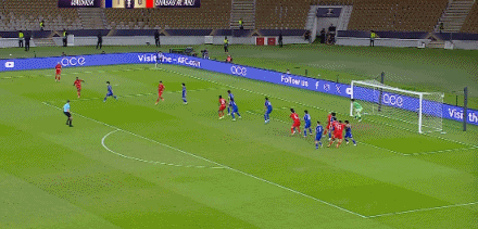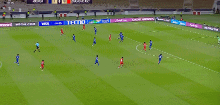 第35分鐘,迪拜青年國民隊險些扳平比分,桑托斯起腳兜射,皮球擊中橫梁。